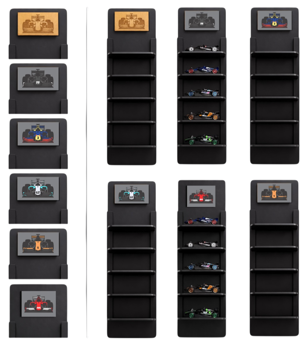 En el automovilismo de alto rendimiento, cada auto tiene su lugar en el paddock.Inspirado en ello, este exhibidor lleva ese mismo concepto a tu colección.Alineada, Organizada y Lista para salir a pista.